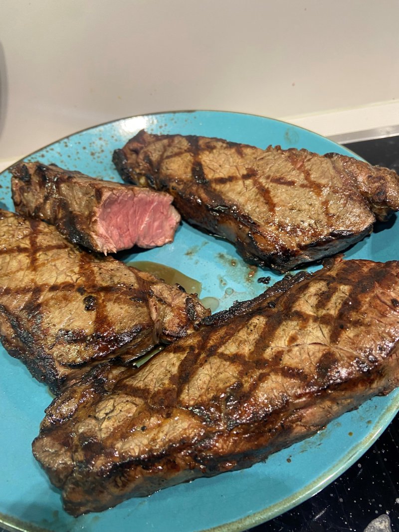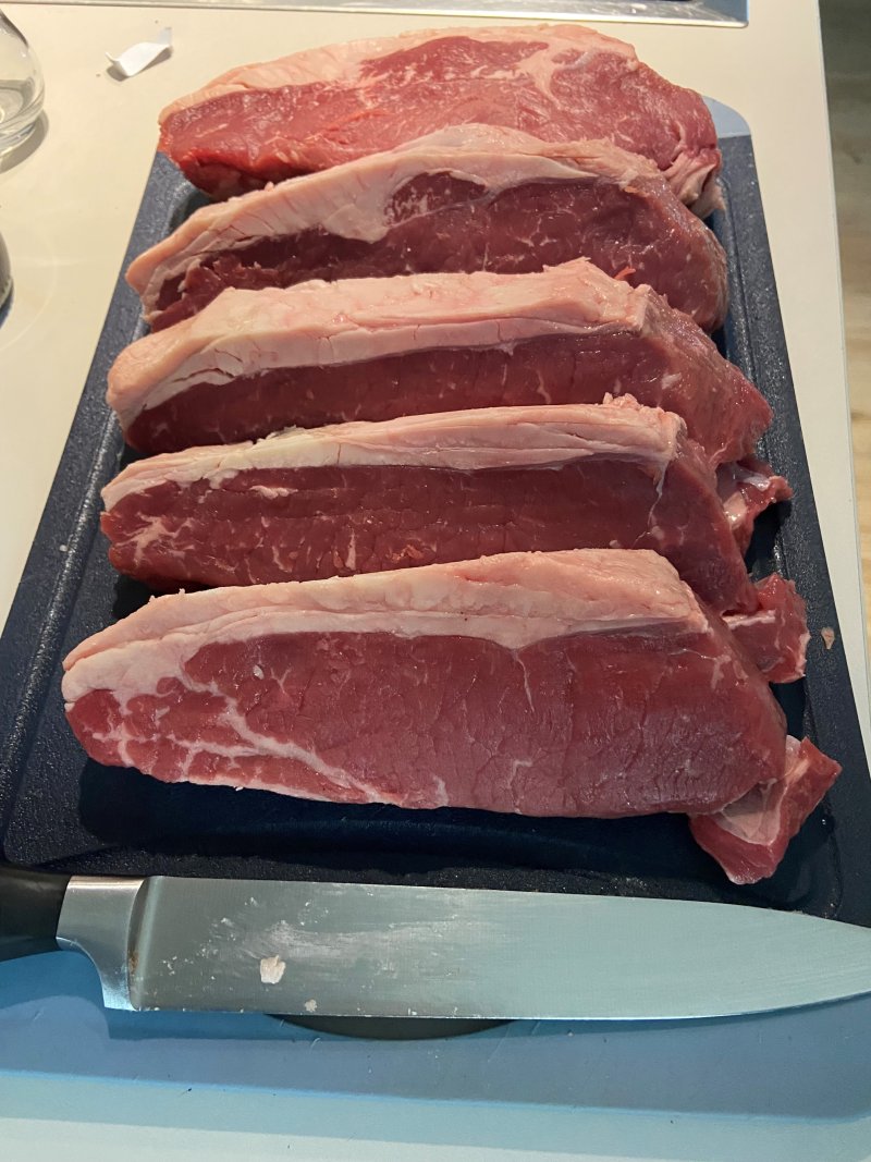 Roastbeef ist ein König unter den Steaks. Ich liebe dieses Steak und zwar medium! Ein gutes Roastbeef hat einen schönen Fettdeckel, den man natürlich runterparieren kann oder , wenn es anch mir geht, richtig schön korss grillen sollte. So entsteht eine tolle Kruste, welche zusätzlich den Geschmack pusht.